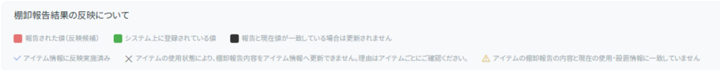 - 棚卸報告の内容に変更があり、アイテム情報への反映が可能な棚卸し計画には「変更適用」 と表示されます