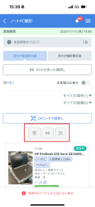 - 「QRコードで棚卸し」をタップしてQRコードをスキャン