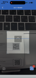 - 「QRコードで棚卸し」をタップしてQRコードをスキャン